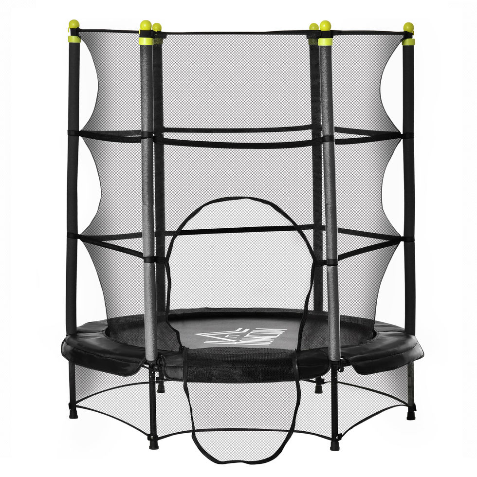 The fun solution to keeping energised kids entertained � this exciting HOMCOM toddler trampoline with enclosure. Designed to bring joy, laughter and fun, kids will spend hours playing and bouncing in the spacious jumping area, which is surrounded with a safety net and padded poles, so they won't fall off. Its bungee design means no springs are included, so they won't stick out and cause harm. Easy to move, it can be enjoyed indoors and outdoors, so kids can jump anywhere at any time.