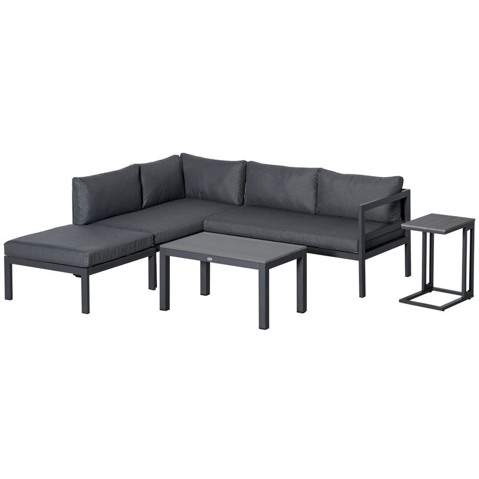 5-Piece L-shaped Garden Furniture Set, Aluminium Conversation Set, Corner Sofa